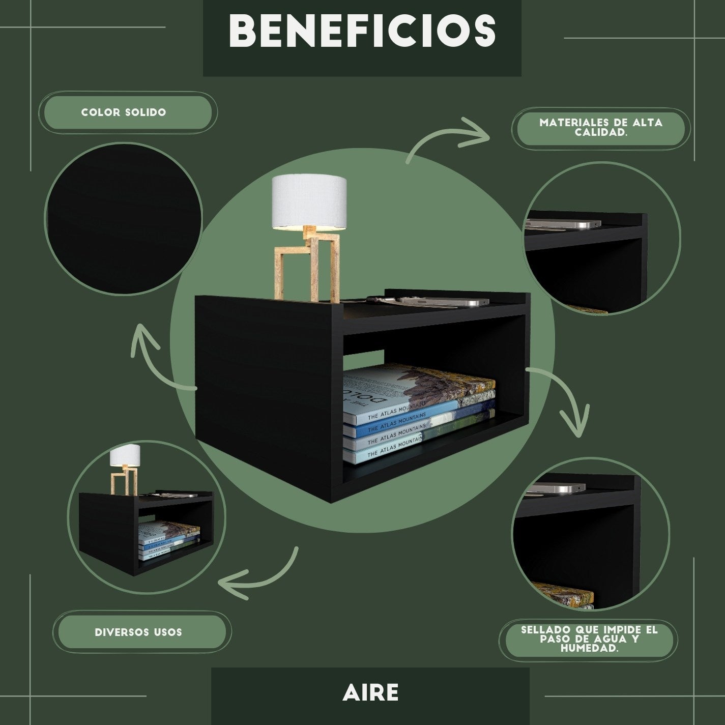 Nuestros muebles minimalistas están fabricados con un cuerpo de MDF y ensamblados con tornillos de acero inoxidable, lo que garantiza durabilidad, resistencia y un diseño moderno y elegante.
